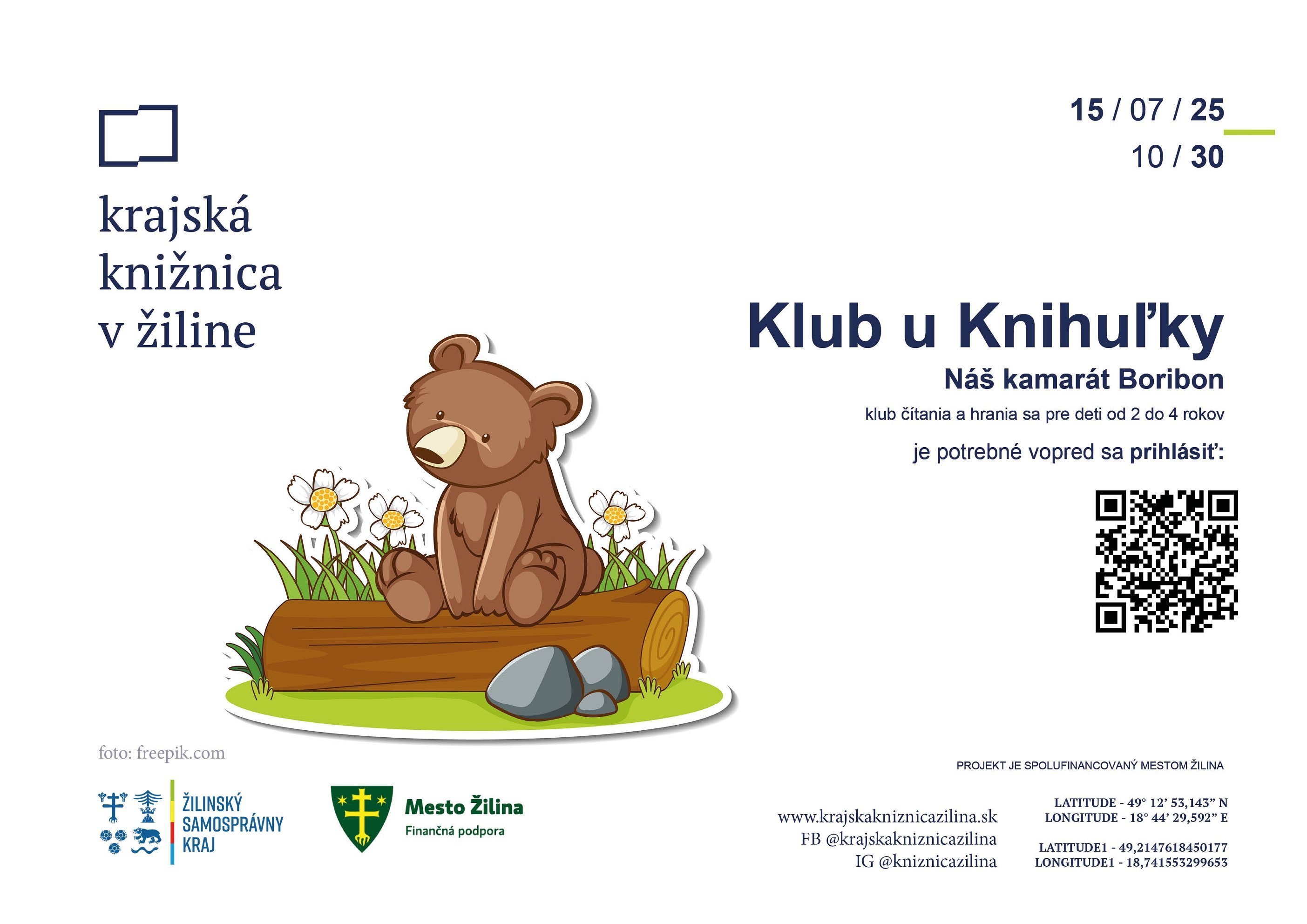 Klub u Knihuľky nezaháľa ani počas letných prázdnin. Náš rozprávkový kamarát Boribon s nami strávi príjemné doobedie v Literárnom parku za krajskou knižnicou. Tak si deti pripravte deku, dobrú náladu, šikovné ruky a chuť tvoriť. Budeme si rozprávať o režime dňa, veľa sa hrať a spoznáme tie najneobyčajnejšie domčeky a skrýše.