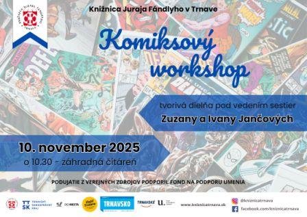 Kreatívne duo sestier Zuzany a Ivany Jančových, ktoré vytvára komiksy pre deti a mládež so spoločensky dôležitými témami, prichádza aj do našej knižnice. Ich komiksy sú určené predovšetkým deťom a mládeži a prepájajú silné témy, emócie a hravé spracovanie. V tvorivej dielni si pod ich vedením deti vyrobia vlastný komiks s rozprávkovými hrdinami.
