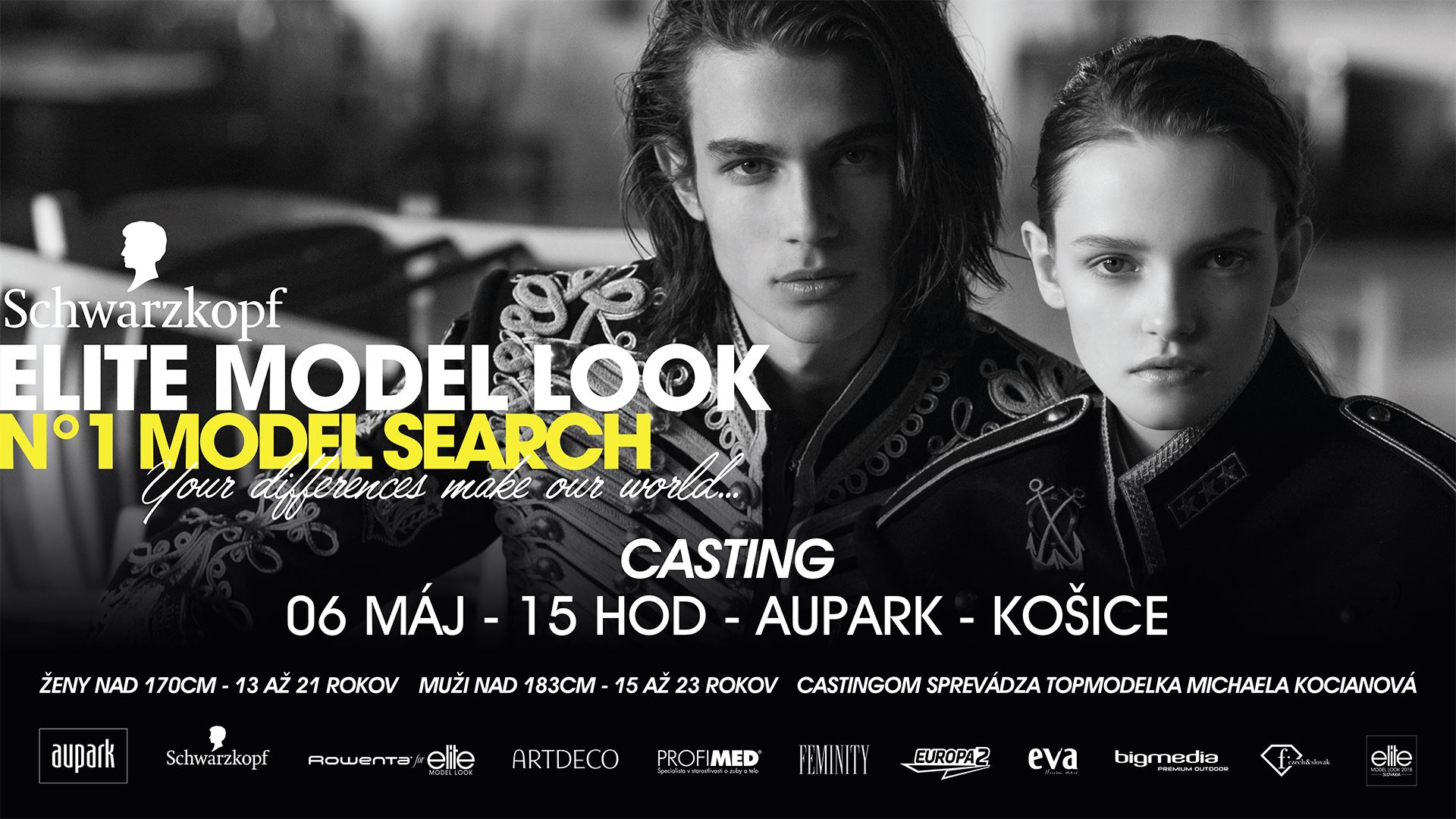 Casting  agentúry Elite Bratislava do najprestížnejšej modelingovej súťaže Schwarzkopf Elite Model Look 2018 sa bude v Auparku Košice konať v nedeľu, 6. mája 2018 od 15:00 hod.