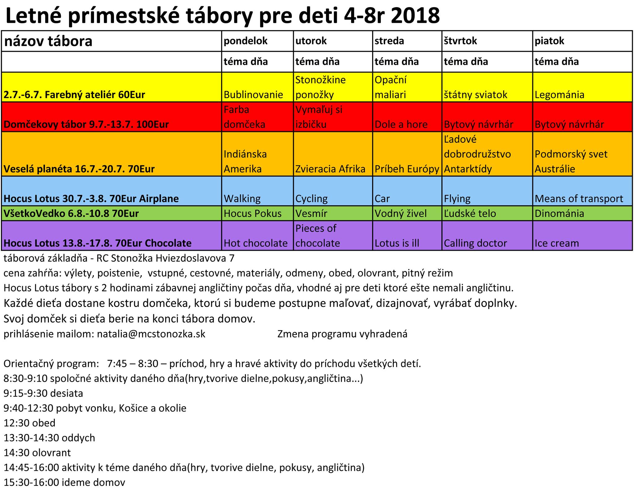 Prihlásenie mailom: natalia@mcstonozka.sk, ak je voľné miesto v tábore, dostanete prihlášku, ktorú nám vypísanú zašlete späť