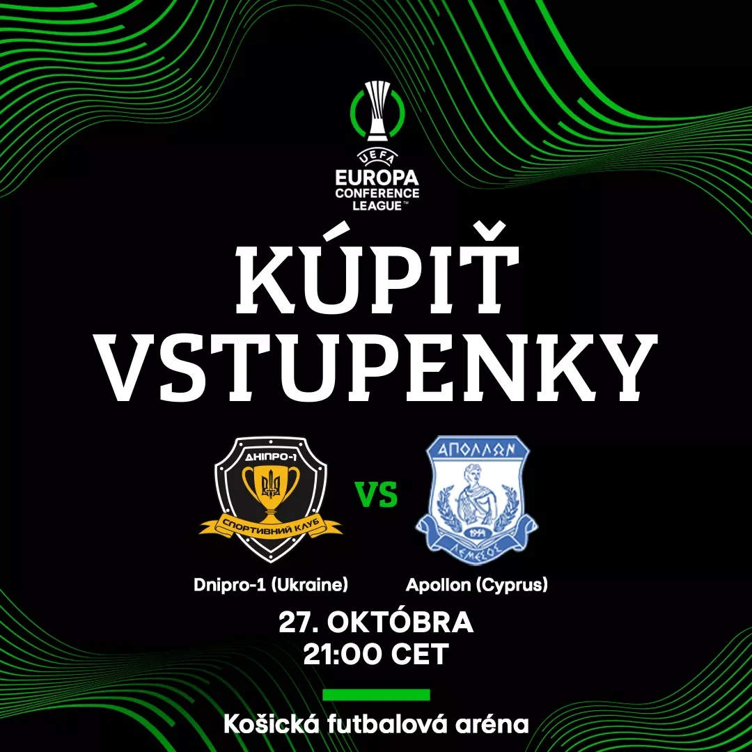 Na košickom štadióne našiel dočasný domov ukrajinský klub SC Dnipro-1, ktorý odohrá súboj v skupinovej fáze UEFA Európskej konferenčnej ligy s Apollon Limassol. Príďte aj Vy podporiť ukrajinský klub na jeho ceste Európskou konferenčnou ligou.