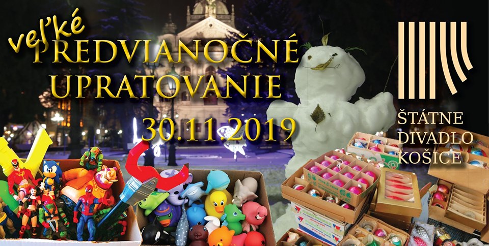 Vyrástli vám deti či vnúčatá? Máte v zákutiach domova ukryté hračky, s ktorými sa už nikto hrať nebude? Nevyhadzujte ich. Upracte ich pred Vianocami do Štátneho divadla Košice. Zapojte sa do „VEĽKÉHO PREDVIANOČNÉHO UPRATOVANIA S DIVADLOM“ a prineste ich do Historickej budovy ŠDKE. Určite neskončia na smetisku, ale potešia deti v detských domovoch. Každý prinesený darček oceníme.
