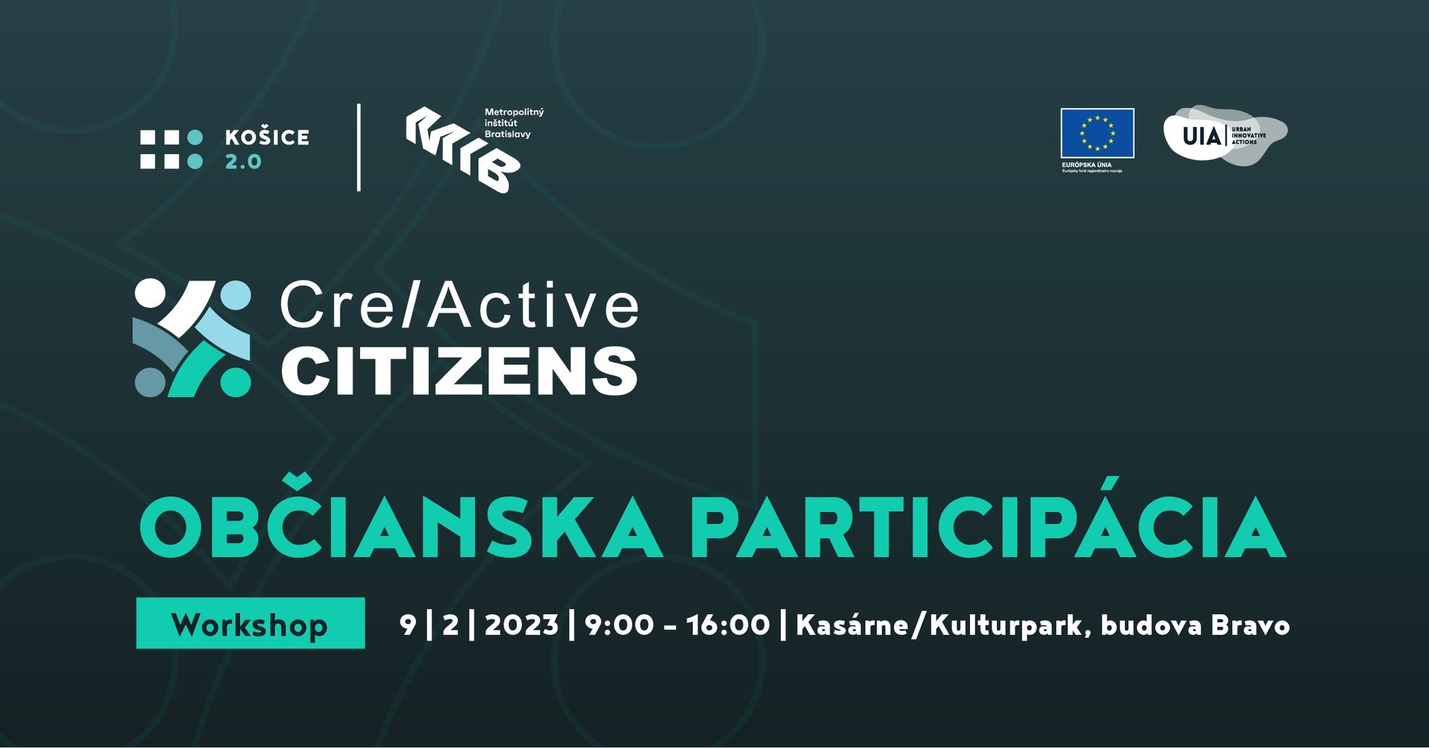 V novom termíne vás pozývame na druhý zo série workshopov Cre/active Citizens, ktorý je venovaný vzdelávaniu občanov v oblastiach rozvoja miest. Workshop Občianska participácia povedú skúsené lektorky z Metropolitného inštitútu Bratislavy (MIB). MIB svojou prácou zvyšuje kvalitu života obyvateľov mesta Bratislava, pretože prináša funkčné riešenia odzrkadľujúce potreby jeho obyvateľov.