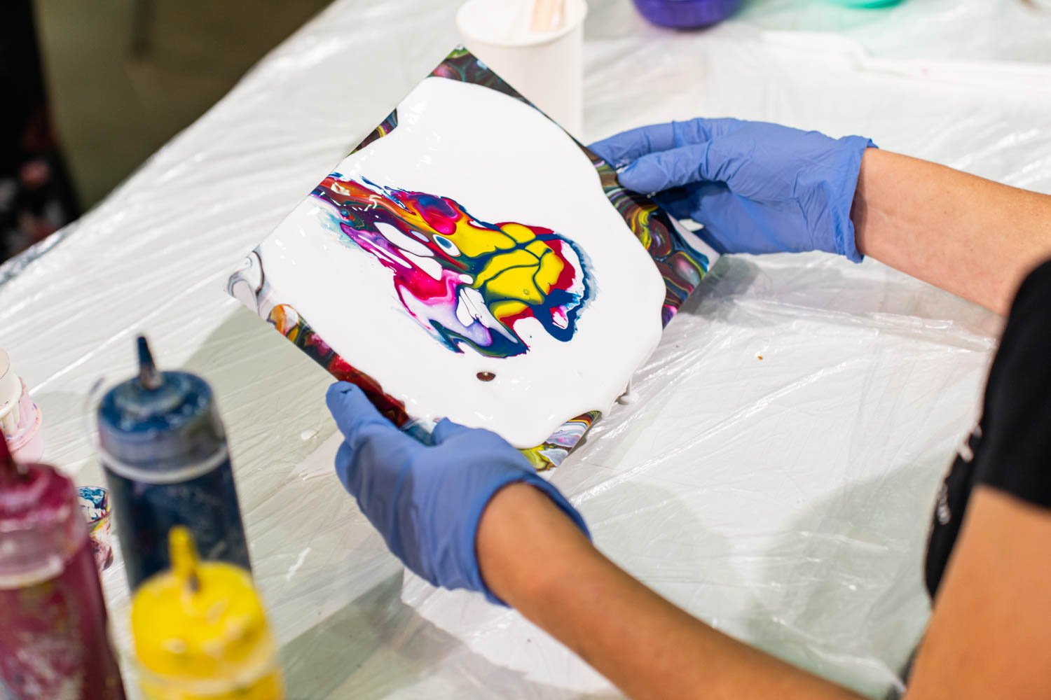 Tvorenie moderných abstraktných obrazov akrylovými farbami, ktoré sa riedia špeciálnym médiom pre ich správnu konzistenciu a následné liatie alebo aplikovanie rôznymi spôsobmi, umeleckými pomôckami na vopred pripravené plátno si môžete vyskúšať na workshope pouring artu vo Výmenníku Wuppertálska 12. marca 2026 o 17:00 hod.