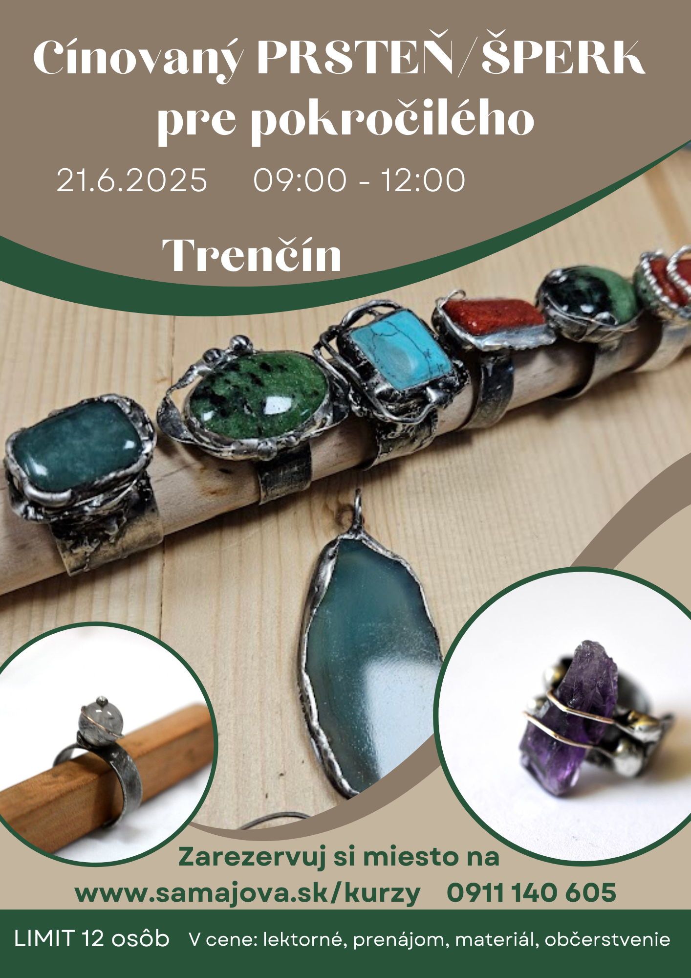 Na kurze Vás prevedieme kompletne výrobou cínovaného šperku - prstienku. Kurz je vhodný pre absolventov mojich kurzov, ktorí chcú skúsiť výrobu prsteňov ale aj začiatočníkov.