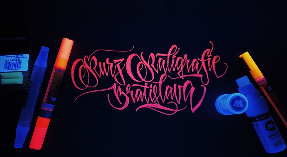 Kurz kaligrafie zameraný na Brushpen, Parallel pen a veľa iných pomôcok určených na kaligrafiu..
