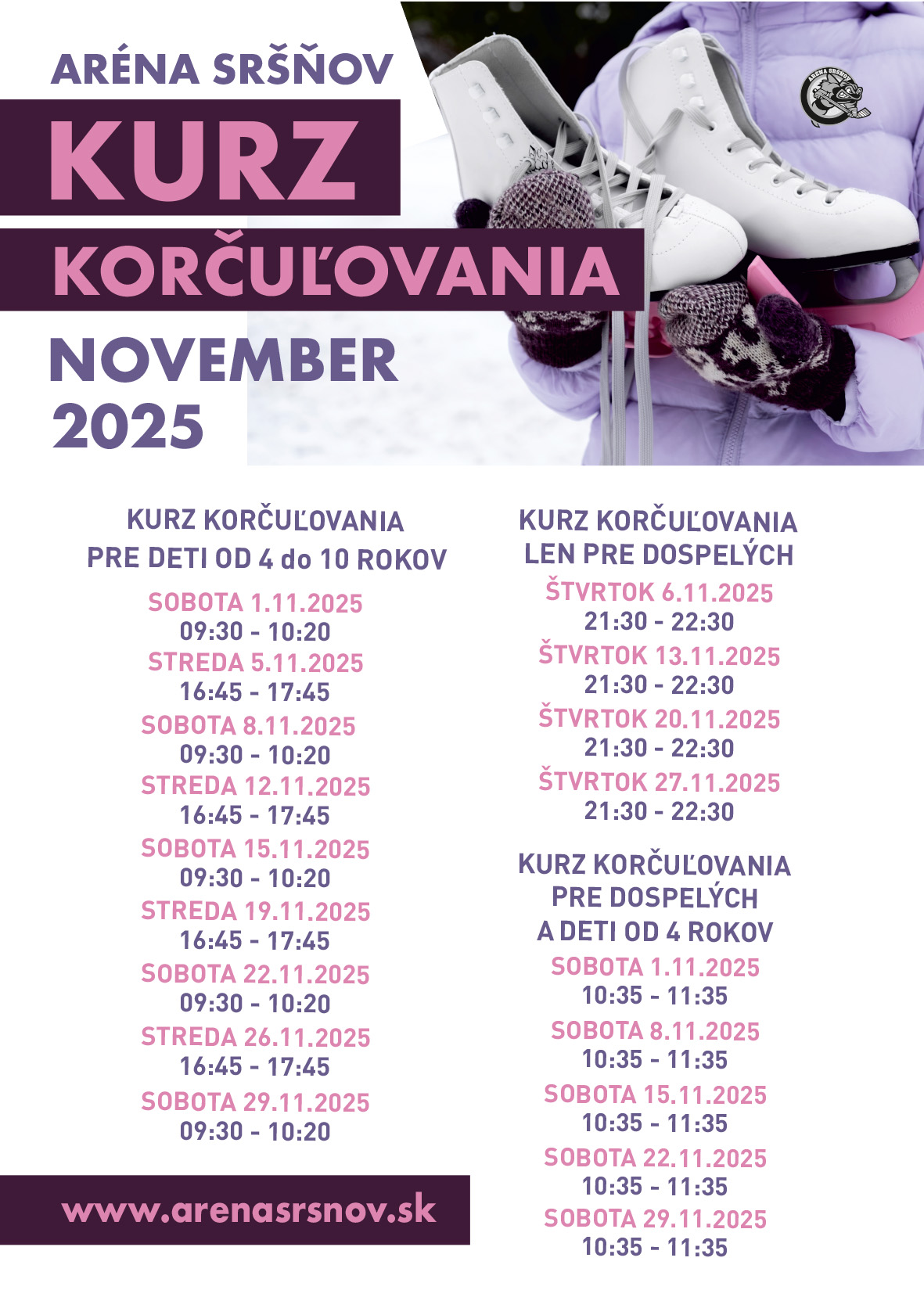 Presné termíny a časy konania kurzov nájdete na www.arenasrsnov.sk.