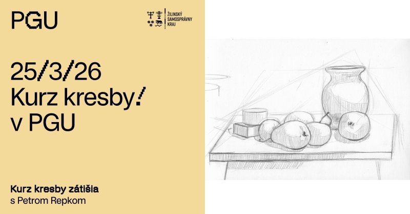 Od 25. 3. 2026 otvárame v priestoroch Považská galéria umenia v Žiline nový cyklus Kurzu kresby zátišia s výtvarníkom Petrom Repkom, ktorý vás prevedie 10 lekciami systematickej práce so zátiším.
