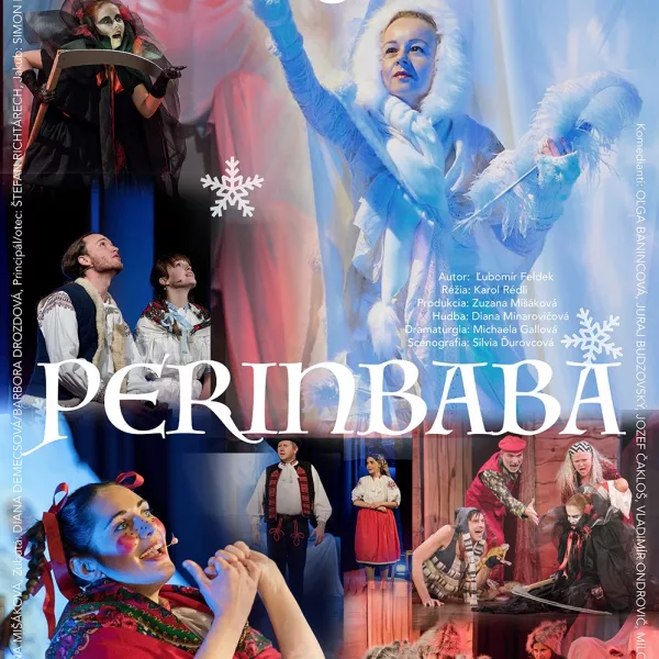V rozprávkovom muzikáli Perinbaba vás budú sprevádzať príbehom lásky Jakuba a Alžbetky láskavá Perinbaba, kmotra Zubatá i  veselí komedianti so svojimi kúzlami a mnohé iné zábavné rozprávkové postavy. Rodinná inscenácia v réžii Karola Rédliho s hudbou Diany Minarovičovej všetkých príjemne naladí na zimný čas. Muzikál Perinbaba je určený všetkým generáciám. Zapozerajte a započúvajte sa s nami do príbehu lásky, ktorá je silnejšia než smrť.