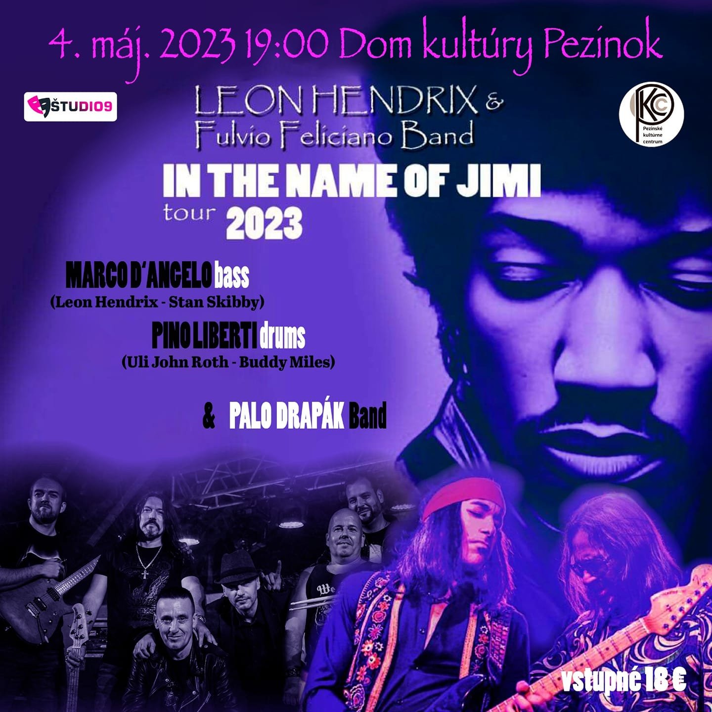 Do Pezinka prichádza brat Jimiho Hendrixa – LEON HENDRIX. Na Slovensku a v Čechách sa Leon objavil po prvý raz v novembri 2022 a publikum si ho ihneď zamilovalo. S projektom In the name of Jimi, sprevádzaný skvelými muzikantmi z Talianska, priniesol spomienku, emócie a tak trochu „kúsok Jimiho“ všetkým, ktorí ho milujú. Nedožité 80. narodeniny tejto gitarovej legendy oslavujú na pódiách skutočne veľkolepo. Leona sprevádza fantastická kapela z Talianska – Fulvio Feliçiano Band.