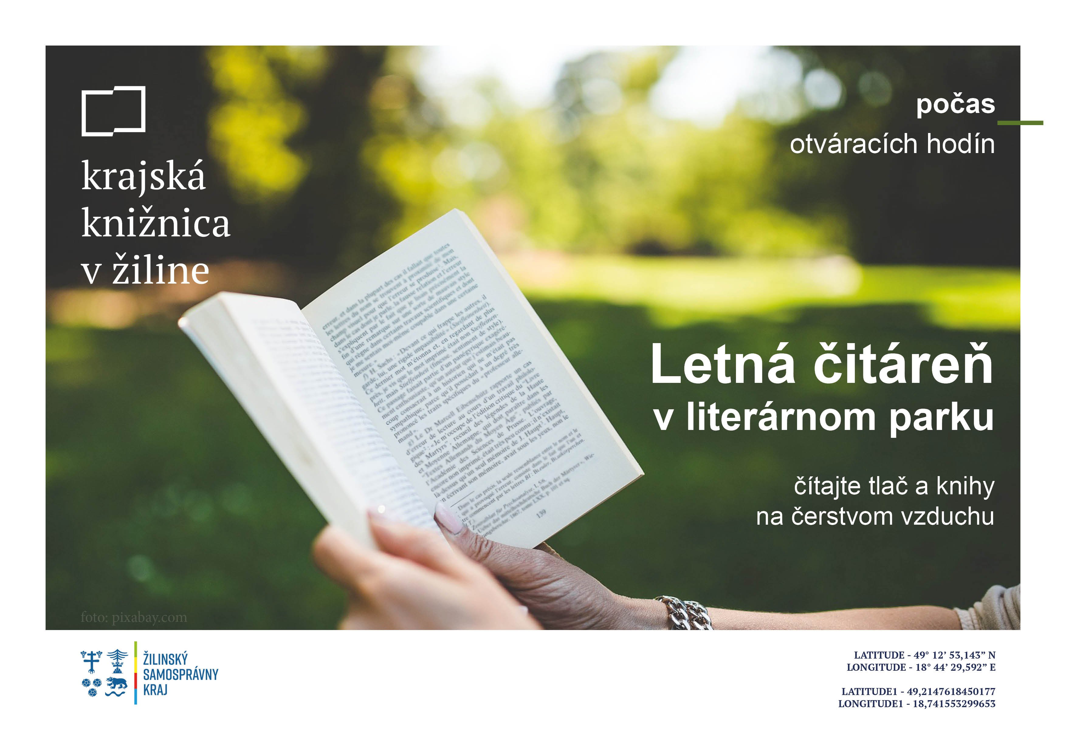 Srdečne Vás pozývame do Literárneho parku za Krajskou knižnicou v Žiline denne počas otváracích hodín knižnice.