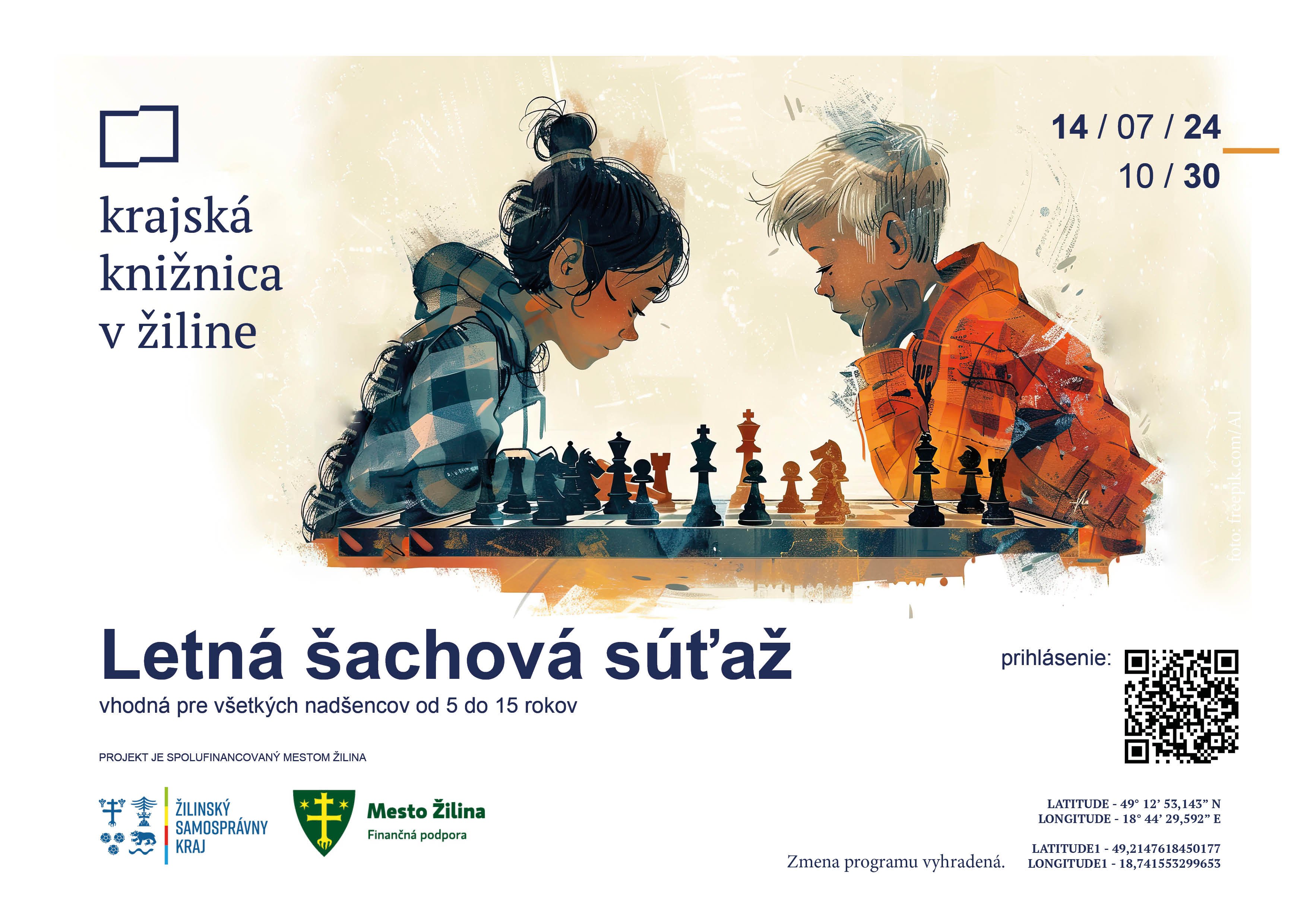Máte radi šach a chcete si zmerať svoje sily aj s ostatnými? Príďte si zahrať, zabaviť sa a objaviť svet šachu. Počas letných prázdnin sa môžete zúčastniť súťaže v príjemnom prostredí Literárneho parku za Krajskou knižnicou v Žiline v pondelok 14. júla o 10:30.