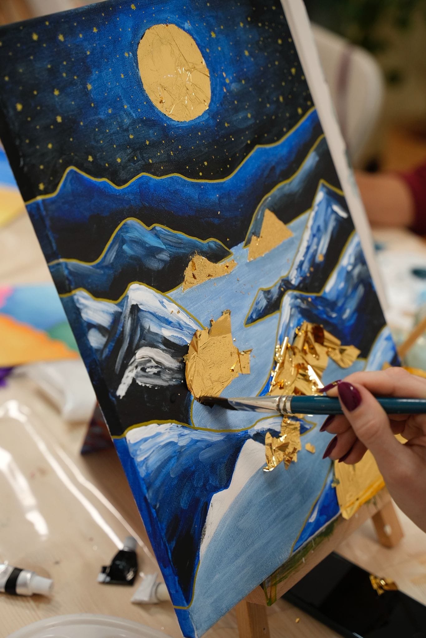 Zaži inšpiratívny workshop plný farieb, pokoja a jemného lesku zlata. Počas 3-hodinového workshopu si vytvoríš vlastný obraz hôr - symbol rovnováhy, sily a vnútorného ticha. Maľujeme akrylom so zlatými plátkami, ktoré dodajú dielu hĺbku a eleganciu.