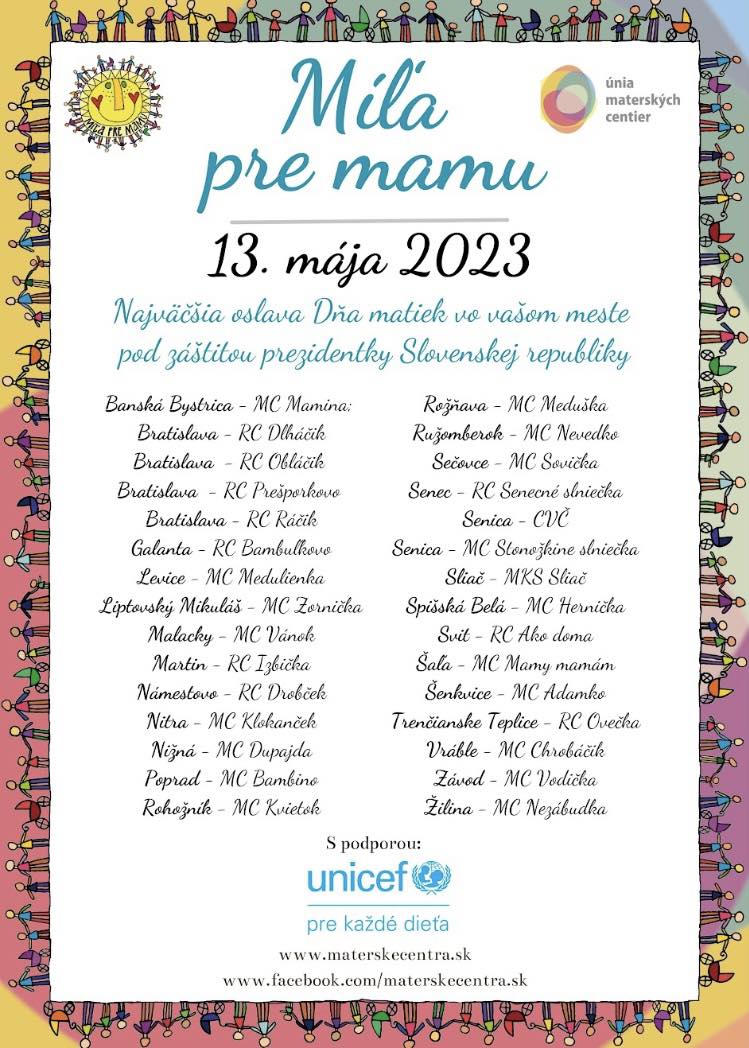 13. mája sa na 30 miestach na Slovensku bude konať v predvečer Dňa Matiek krásna akcia: Míľa pre mamu 2023.