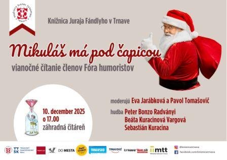 Tento rok sa Fórum humoristov rozhodlo pozrieť bližšie na typickú časť oblečenia Mikuláša, a síce jeho čapicu. Jeho členovia sa pokúsia odhaliť "Čo má Mikuláš pod čapicou?“ Opýtali sa to aj malých detí a odpovede si iste radi vypočujete. Môžete sa pridať aj vy, diváci, a spolu to odhalíme.