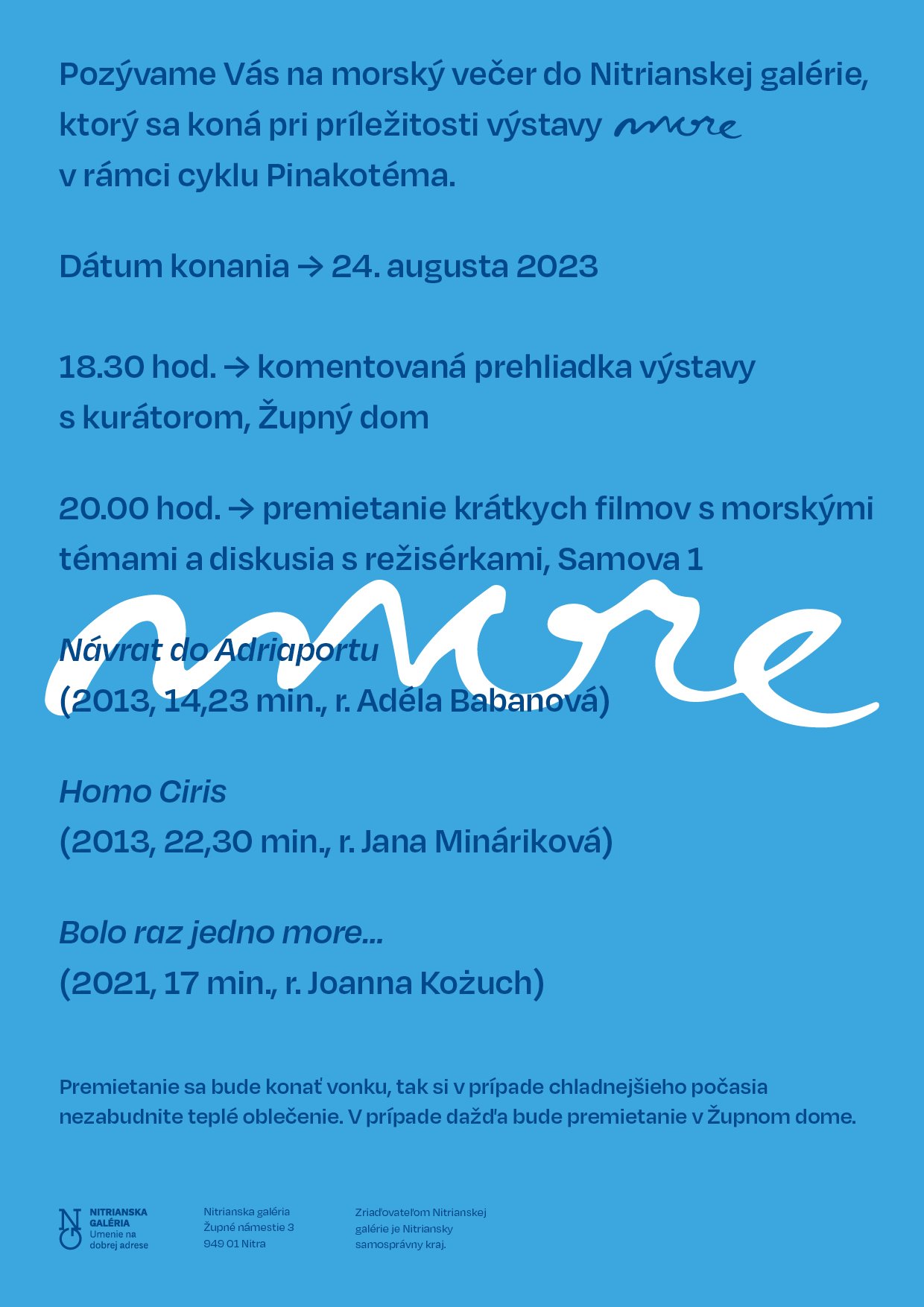 Pozývame vás na morský večer do Nitrianskej galérie, ktorý sa koná pri príležitosti výstavy 𝒎𝒐𝒓𝒆 v rámci cyklu Pinakotéma!