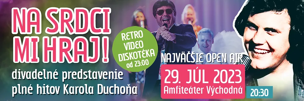 Divadelné predstavenie plné hitov Karola Duchoňa po prvý krát pod holým nebom v Amfiteátri vo Východnej. Ako bonus po predstavení video retro diskotéka, na ktorej sa spolu zabavíme až do rána, ako za starých dobrých čias.
