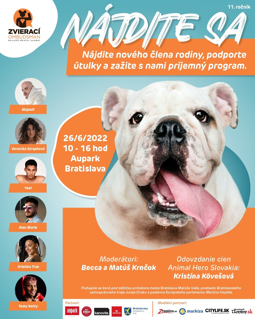 Zažite 11. ročník podujatia Nájdite sa...so zvieratkom z útulku spoločne s nami, s vybranými slovenskými útulkami, účinkujúcimi a útulkáčmi, ktorým, veríme, nájdeme nový láskavý domov.