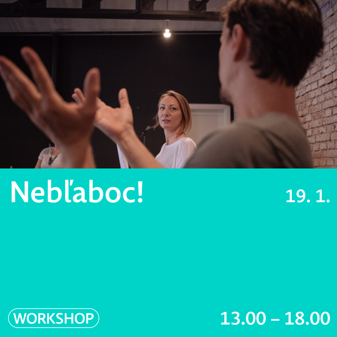 NEBĽABOC! je interaktívny, intenzívny tréning osobného rozvoja. Využíva základné herecké techniky, ktorými pomáha zlepšovať komunikačné schopnosti. Je určený všetkým, ktorí túžia využívať širšie možnosti svojho tela, dychu, reči a hlasu ako pracovného nástroja a výrazového prostriedku.