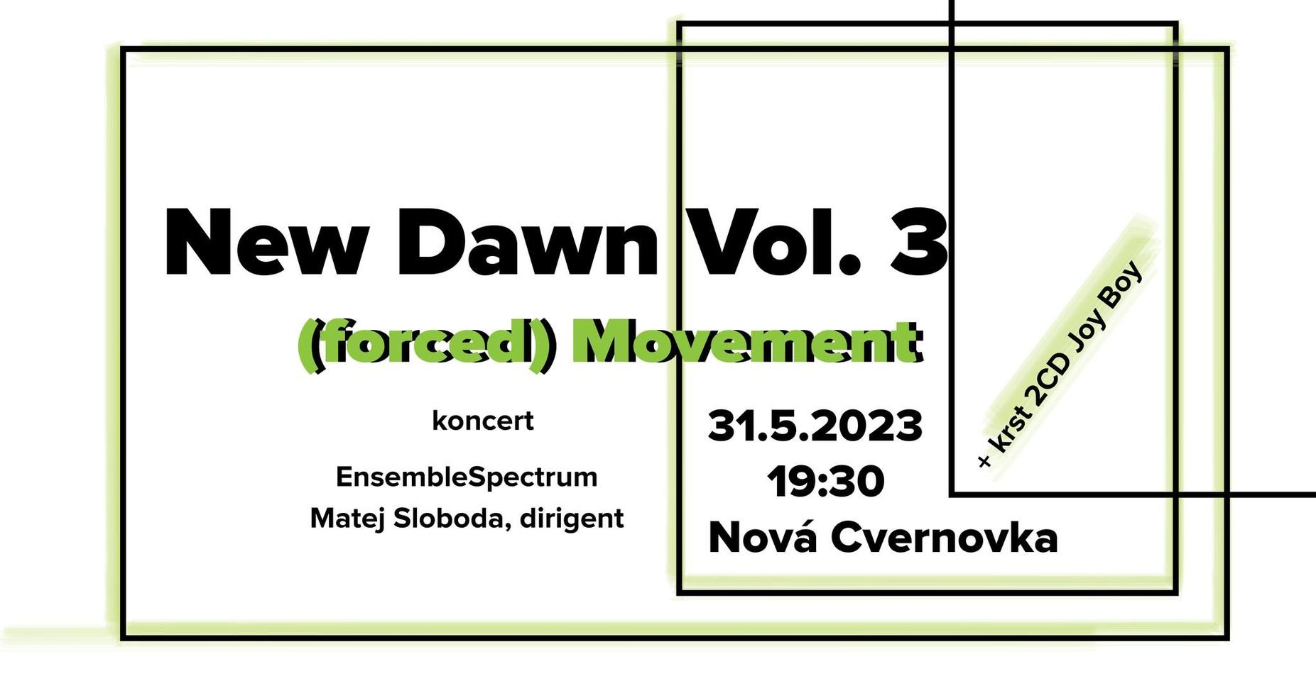 Projekt New Dawn Vol. 3 – (forced) Movement, ako jeho názov napovedá, je už treťou generáciou dramaturgickej línie komorného súboru EnsembleSpectrum venovanej mladým skladateľkám a skladateľom zo Slovenska a zahraničia.