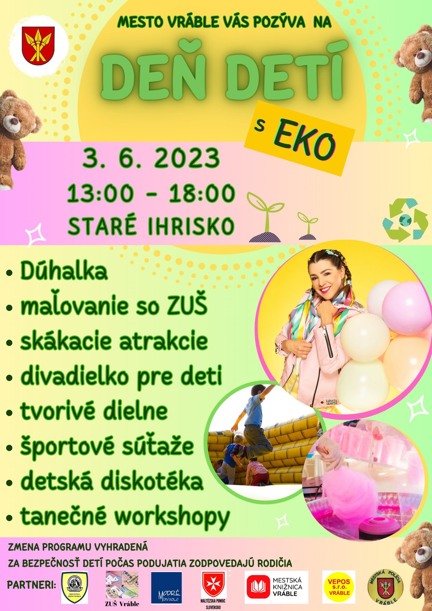 Vystúpenie Dúhalky, maľovanie so ZUŠ I. Godina, skákacie atrakcie, divadlo pre najmenších, tvorivé dielne pre deti, športové súťaže a tanečné workshopy. A na záver detská diskotéka.