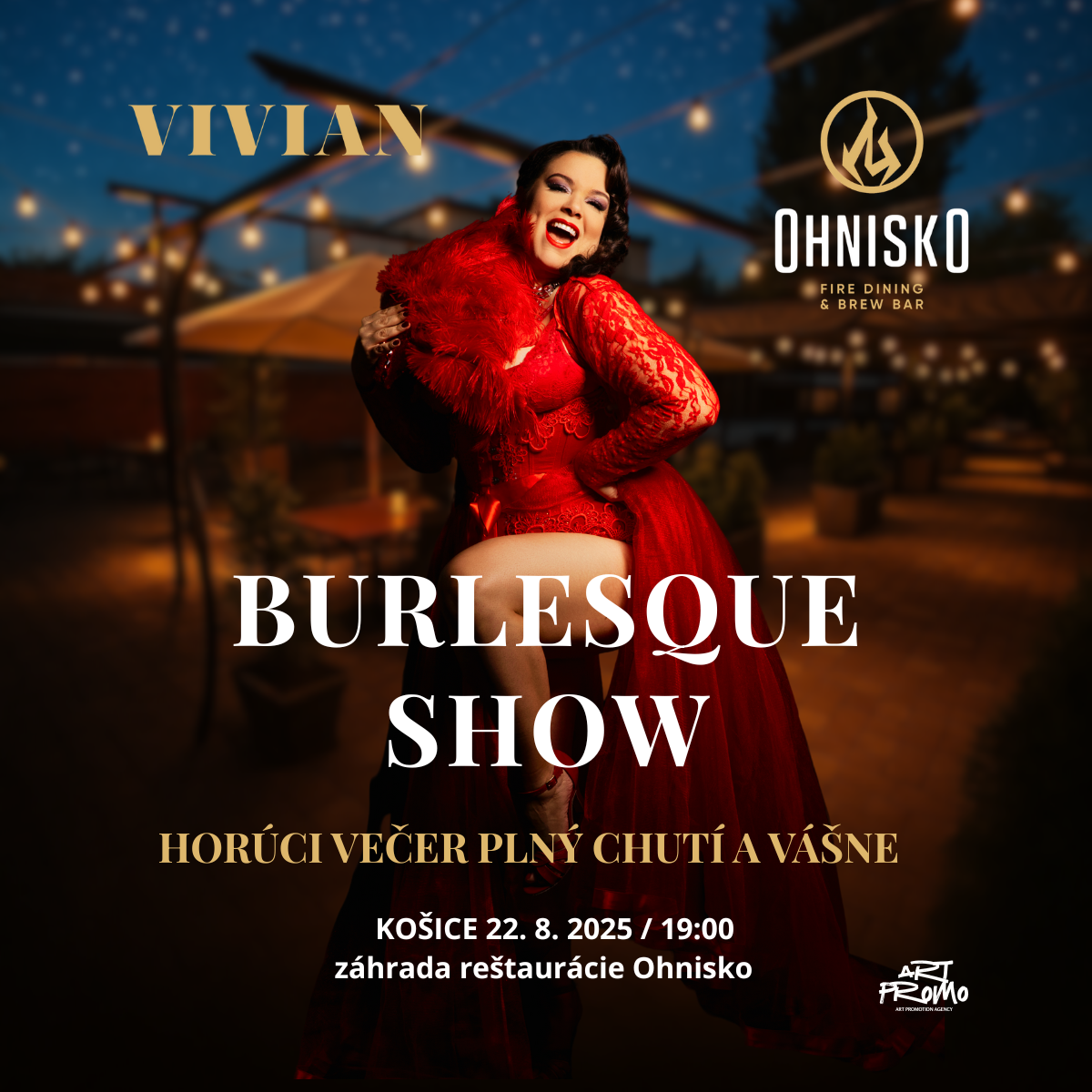 Večerom ťa bude sprevádzať nezameniteľná Lady Vivian, ikonická postava slovenského burlesque, spolu so svojimi očarujúcimi dámami – priprav sa na večer, ktorý rozohreje všetky tvoje zmysly.