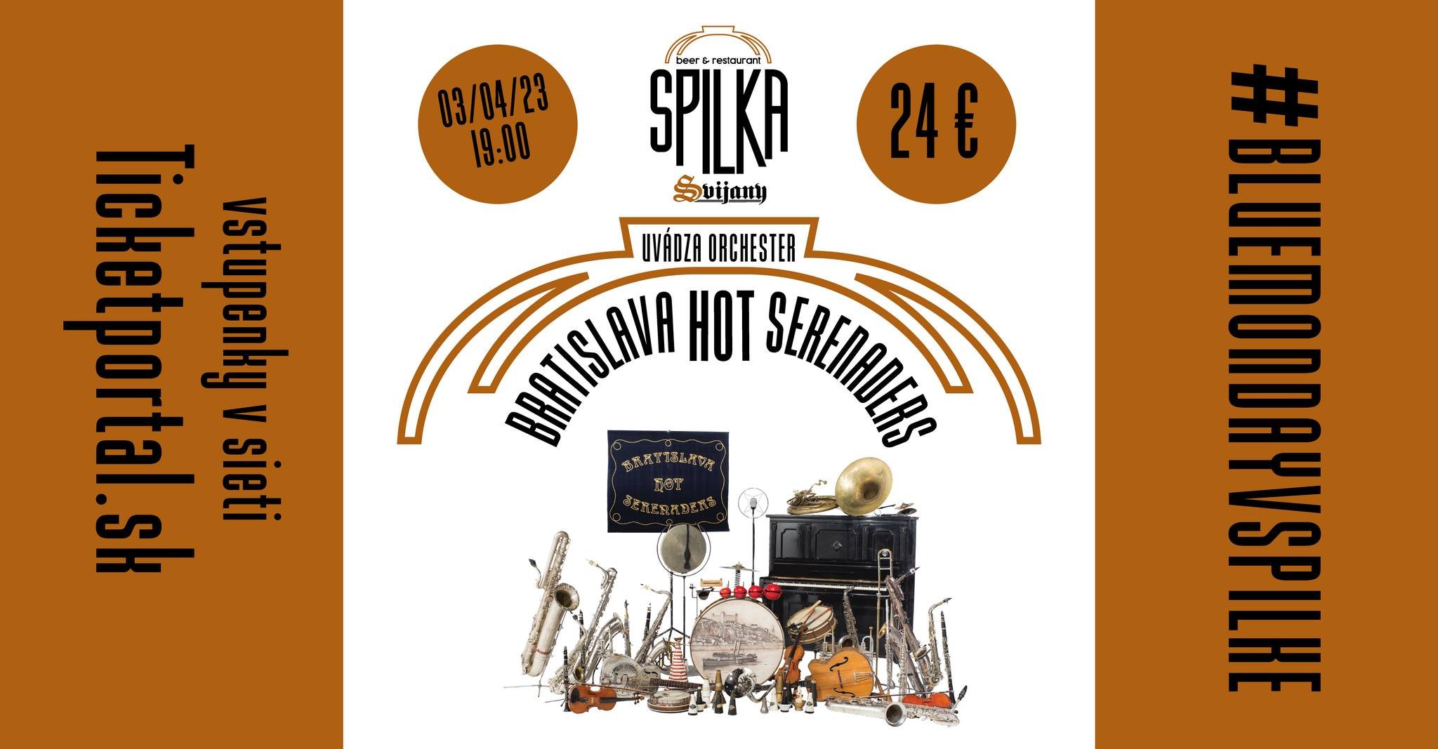 Hot jazzová hudba #BLUEMONADYSVSPILKE v podaní orchestra Bratislava Hot Serenaders zahrá niekoľko “rúnd”, medzi ktorými sa budete môcť osobne porozprávať s členmi orchestra, zakúpiť si niektoré z CD, ktoré Vám s radosťou podpíšu. V neposlednom rade si môžete vychutnať skvelé tankové Svijany a tradičnú kuchyňu.