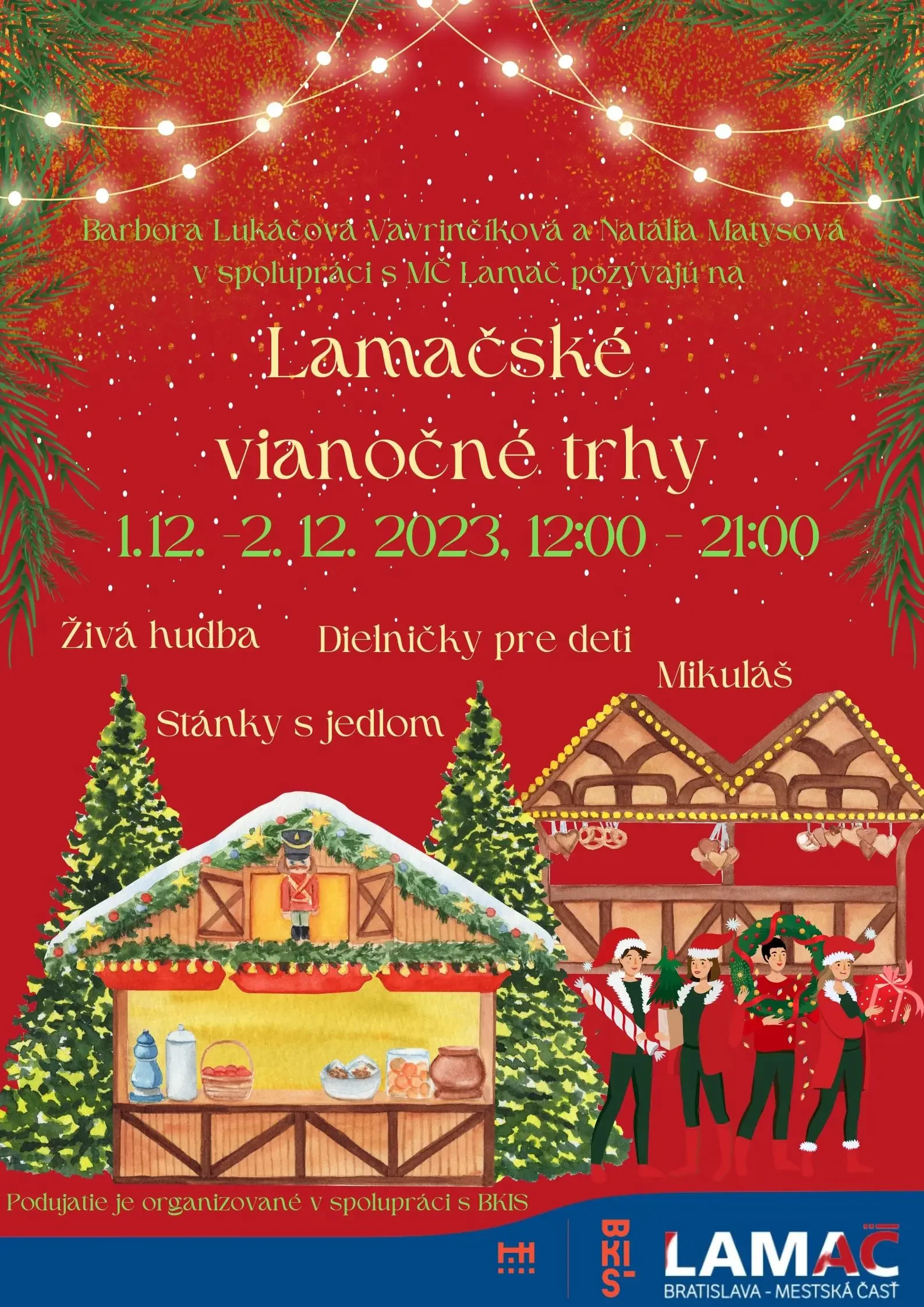 Barbora Lukáčová Vavrinčíková a Natália Matysová v spolupráci s mestskou časťou Bratislava-Lamač vás pozývajú na druhý ročník Lamačských vianočných trhov.