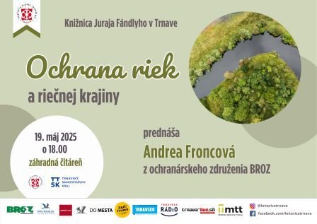 V spolupráci s Slovenskou ornitologickou spoločnosťou vás pozývame na prednášku o ochrane riek a riečnej krajiny. Prednáša Andrea Froncová z Bratislavského regionálneho ochranárskeho združenia (BROZ). BROZ má skúsenosti so záchranou ohrozených území, napríklad po reguláciách Veľkolélskeho ramena v 80. rokoch minulého storočia a jeho odrezaní od hlavného toku Dunaja sa z ostrova, ktorý vytváral, začal vytrácať život. Vďaka ochranárom sa na ostrov vrátil tradičný spôsob hospodárenia v súlade s prírodou a v spolupráci so štátnym podnikom Vodohospodárska výstavba v roku 2014 sprietočnili rameno. Vytvorili tak podmienky na obnovu pôvodných lužných lesov a mokradí a návrat pôvodných druhov.