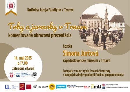 Simona Jurčová príde do záhradnej čitárne porozprávať o trnavských trhoch a jarmokoch. Trhy a jarmoky patria k Trnave oddávna, veď maďarský názov Trnavy – Nagyszombat súvisí s trhovým dňom – sobotou.