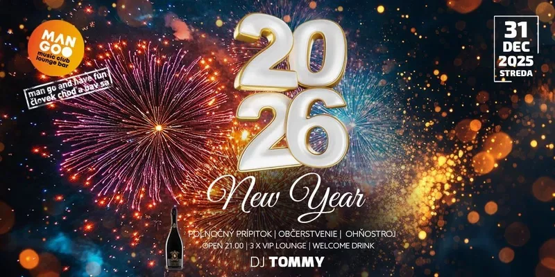 V stredu, 31.12.2025, si v Mangu 🥭 spoločne užijeme poslednú párty tohto roka 🧡🔝 Na NEW YEAR 2026 žúrke určite nesmieš chýbať 🔥🎶 Čaká ťa parádny večer plný naloženej atmosféry v našom clube 🫶 Hitovice nám namixuje náš rezident DJ TOMMY 🎤 🎶 a my ti garantujeme, že táto noc sa zapíše do histórie 🧡✨ Chýbať nebude ani WELCOME DRINK, 🥂 malé občerstvenie, polnočný prípitok v podobe 🍾 CASANOVA CUVÉE EXTRA DRY a, samozrejme, už tradične 🎆 MEGA OHŇOSTROJ ✌️😎 Zober svoju crew a príďte sa baviť, pretože to bude naozaj stáť za to 🔝🔥 Vidíme sa, priatelia 🧡