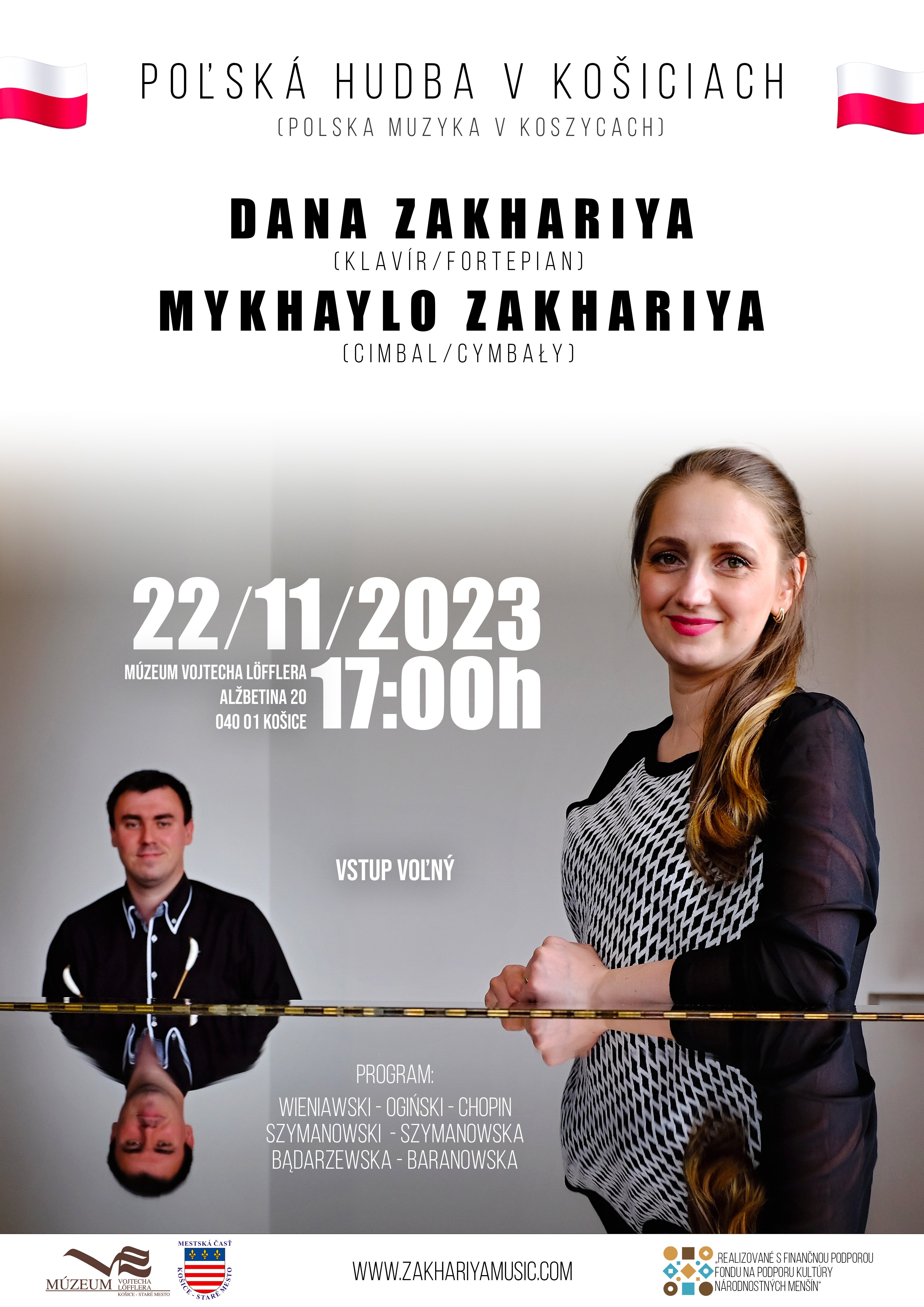 Srdečne Vás pozývame na koncert v podaní skvelých hudobníkov Dany a Mykhayla Zakhariya. V klavírnom a cimbalovom prevedení si vypočujete skladby poľských skladateľov.