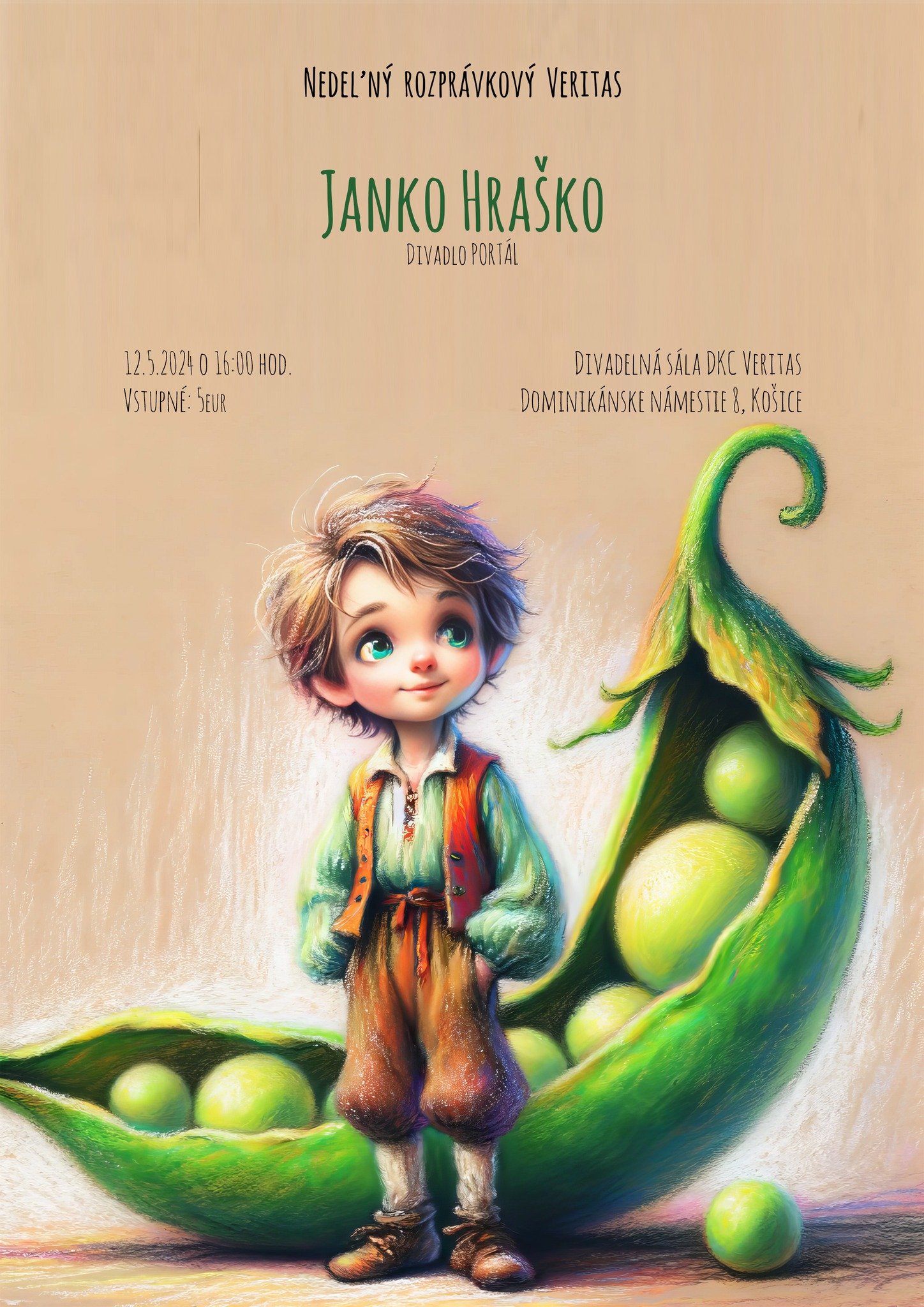Bábkovo-činoherná rozprávka o maličkom chlapčekovi, ktorý vystúpil z hrachu. Veselý príbeh popretkávaný pesničkami, vám priblíži ako sa svojou šikovnosťou, usilovnosťou a vynaliezavosťou stane z malého človiečika veľký človek. Janko Hraško si získa lásku rodičov, zvládne nejednu prekážku a poteší všetky deti.