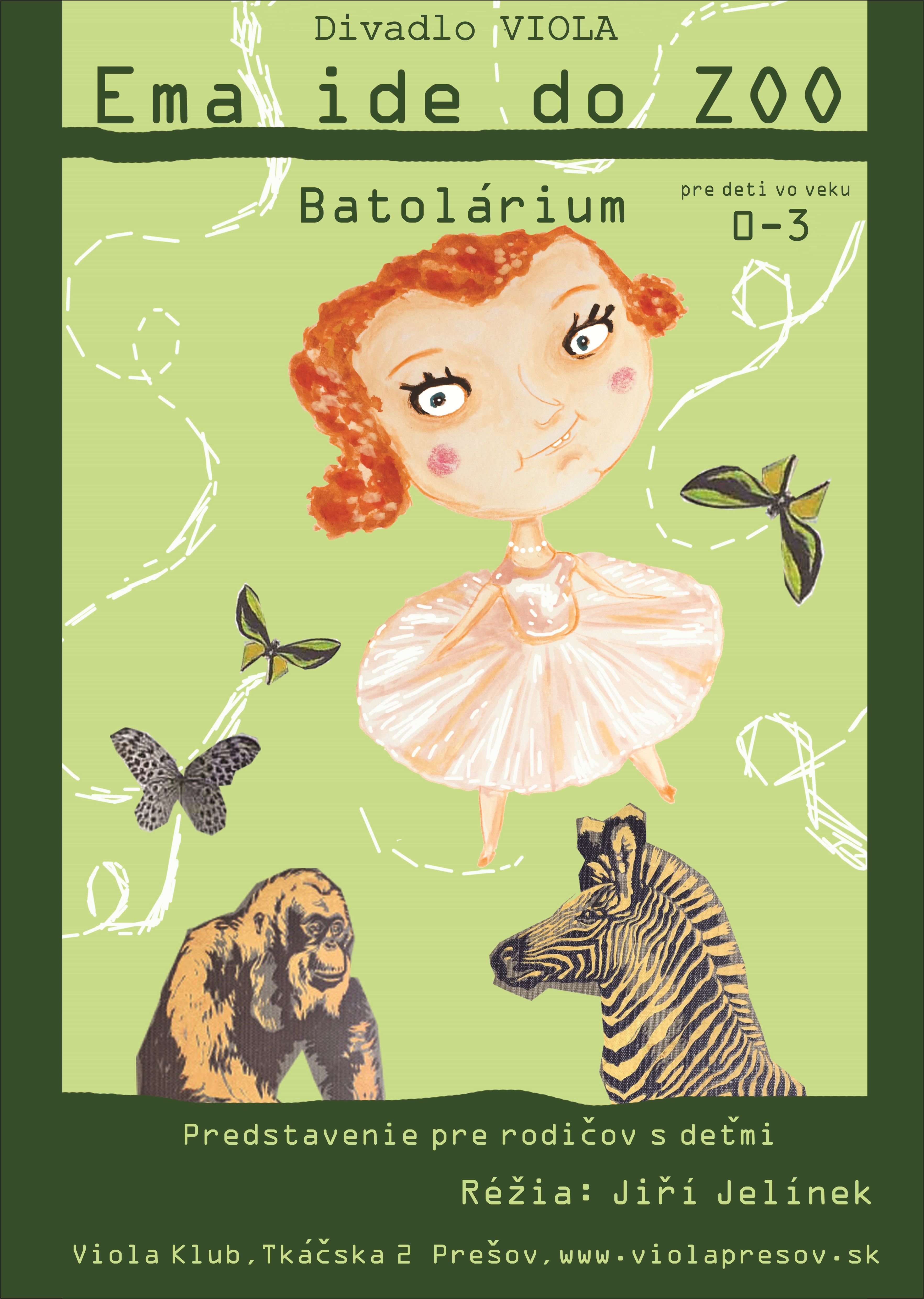 Naše batolárium je príležitosťou vziať do divadla tých úplne najmenších. Inscenácia o Eme, ktorá nesie zvieratkám do ZOO prekvapenie. Inscenácia, v ktorej sa nekričí ani nezhasína svetlo. Chceme len, aby ste sa pohodlne usadili uprostred útulnej kaviarne na vlastné miestečko, vy, ako rodičia si mohli vypiť dobrú kávu, po ktorej poviete: „mňam!“ a vaša ratolesť po zhliadnutí predstavenia možno povie svoje prvé: „jéj!“. Stres nechajte na vešiaku pri dverách. Sľubujeme dostatok miesta pre všetkých lezúňov a spočinutie v čarokrásnej atmosfére príbehu.