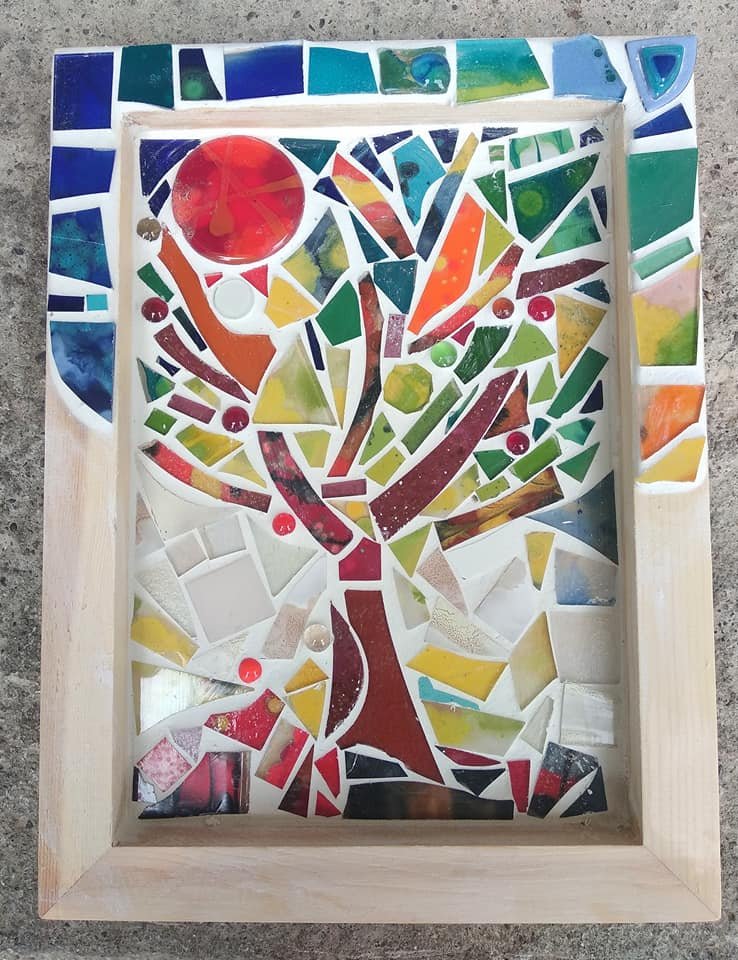 Materiál: sklo, mozaika, kachlička, pasta - ceresit.