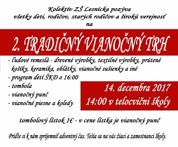 Pozývame Vás na 2. TRADIČNÝ VIANOČNÝ TRH