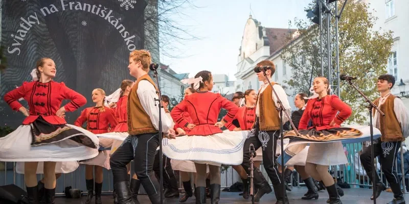 Príďte sa naladiť na sviatočnú atmosféru s detským folklórnym súborom Dolina, ktorý svojim programom plným kolied, vinšov a vianočných piesní rozžiari Františkánske námestie.
