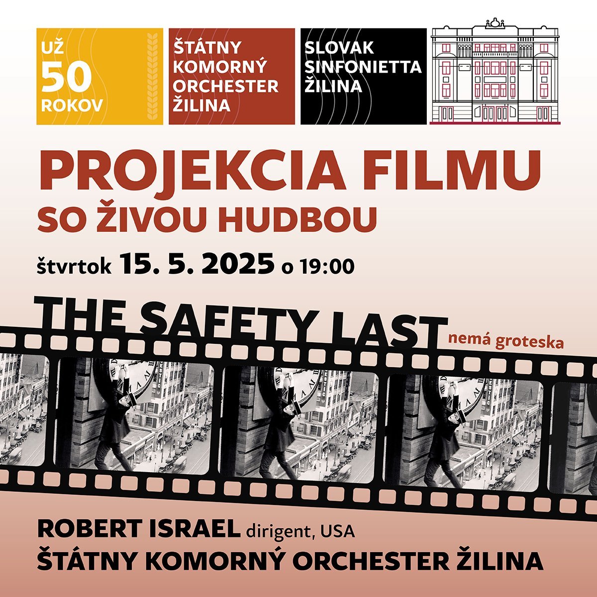 Po veľkom úspechu filmovej grotesky Frigo sa žení v podaní ŠKO a dirigenta Roberta Israela s využitím projekčného plátna v DUF, prináša tento skvelý dirigent a skladateľ ďalší zaujímavý projekt – slávnu nemú grotesku The Safety Last (O poschodie vyššie) s hviezdnym Haroldom Lloydom. Americký filmový herec, komik, kaskadér a producent, jedna z veľkých amerických filmových hviezd éry nemých grotesiek Harold Lloyd nakrútil medzi rokmi 1913 až 1947 približne 200 nemých aj zvukových grotesiek a komédií.