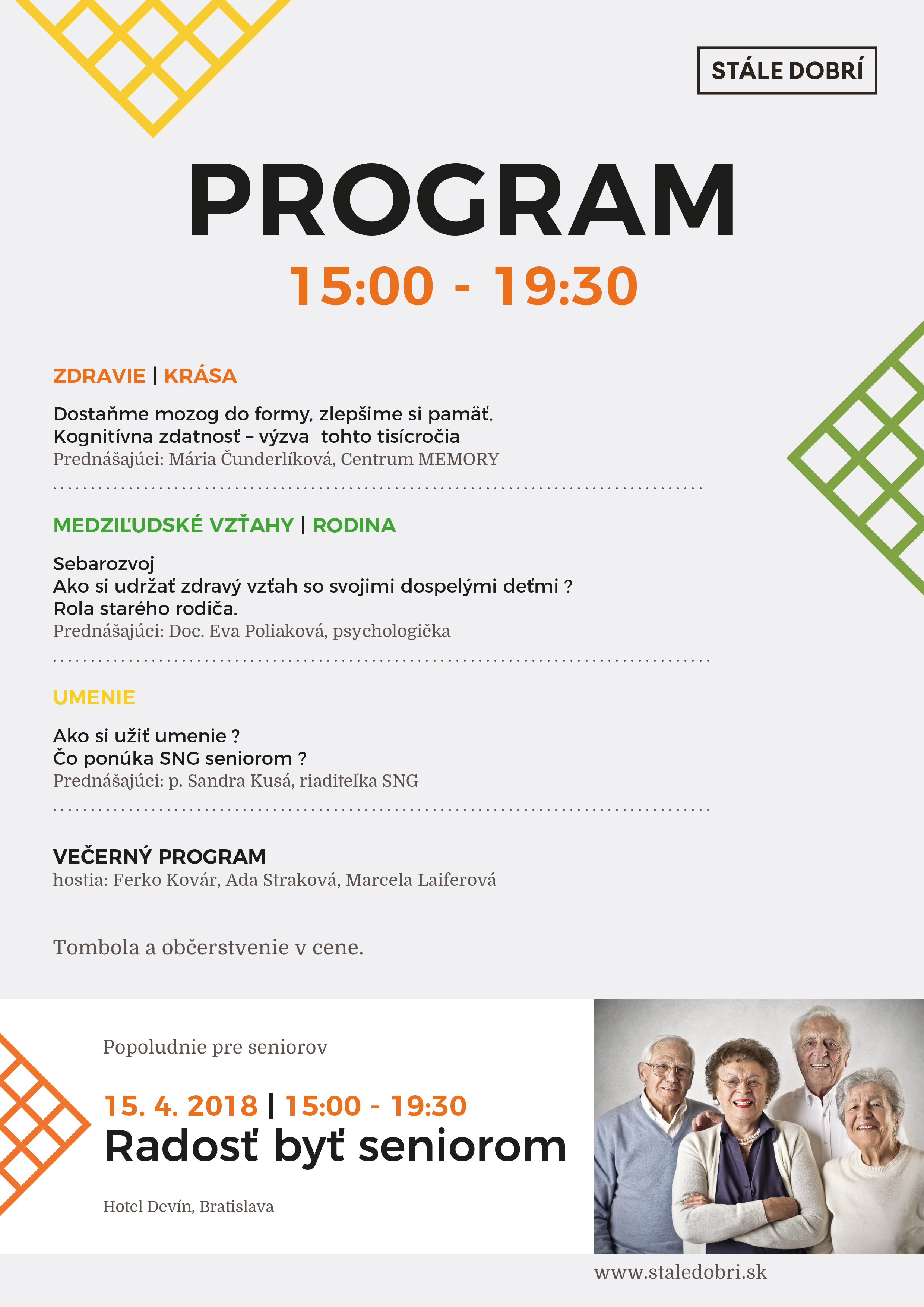 Vstupenky dostupné v predaji online tu: www.staledobri.sk/radost-byt-seniorom