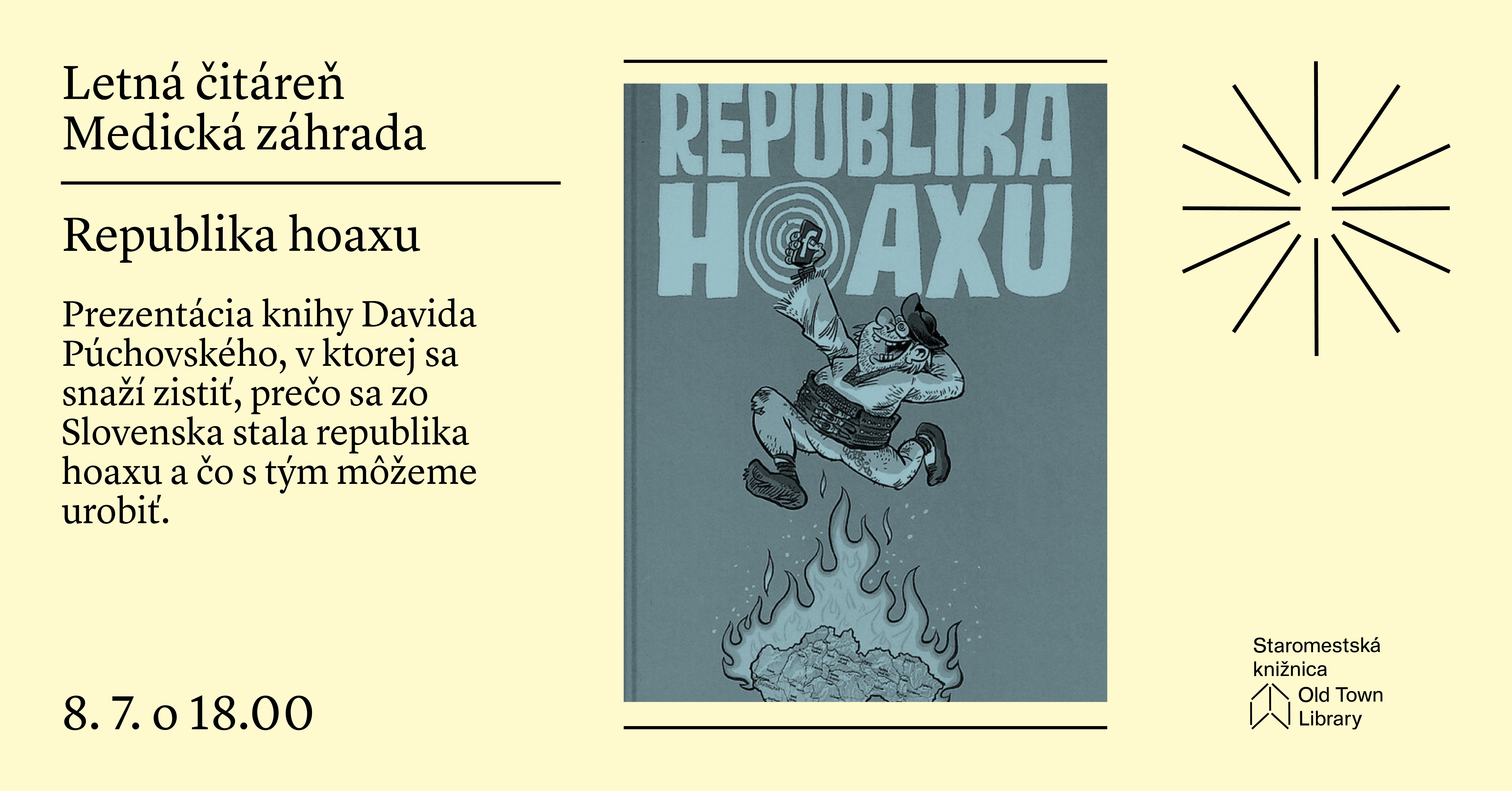 Vstup voľný. Tešíme sa na všetkých záujemcov 8. júla o 18.00!