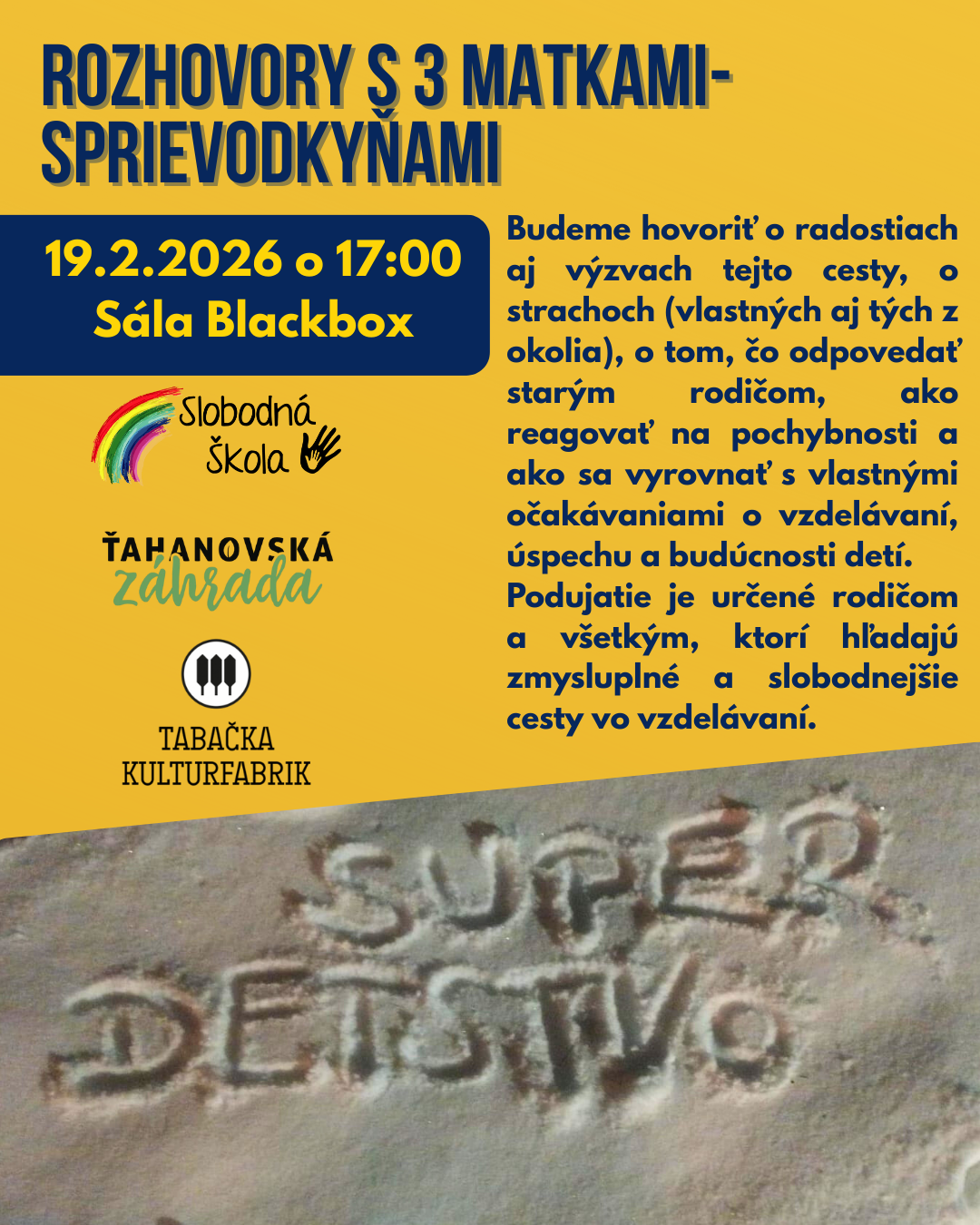 Podujatie je určené rodičom a všetkým, ktorí hľadajú zmysluplné a slobodnejšie cesty vo vzdelávaní.