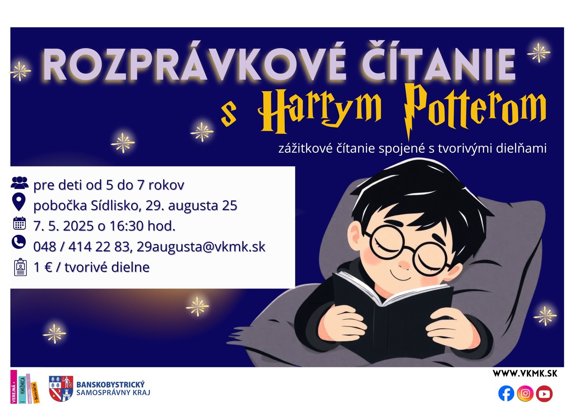 🎯 Ak máte 5 až 7 rokov, radi čítate (aj Harryho Pottera) a tvoríte, toto podujatie v knižnici bude pre vás ako stvorené!