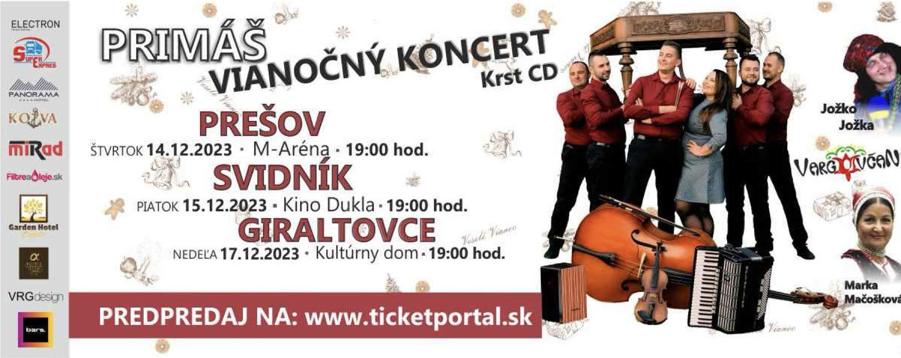 Cimbalová hudba Primáš vydáva vianočné CD “Melódie Vianoc” a pri tejto príležitosti organizuje vianočné koncerty, kde vystúpia aj skvelí hostia: ľudový rozprávač Jožko Jožka, prvá dáma rusínskej piesne Marka Mačošková a s programom “Pastuškove” vystúpia členovia súboru FS Vargovčan.
