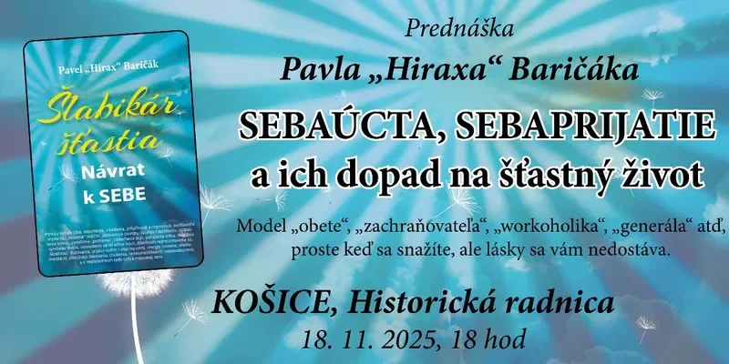 Pavel Hirax Baričák bude rozprávať o modeloch „obete“, „zachraňovateľa“, „workoholika“, „generála“, “perfekcionalistu” atď, proste keď sa úporne snažíte, ale lásky sa vám nedostáva. Keď si pocit sebaurčenia chcete dokázať cez úspech, prehnaný dôraz na vonkajšiu krásu, prejedáte sa alebo podľahnete iným zlozvykom. Živoríte, trpíte a pritom sa iba vysiľujúco snažíte dostať lásku, ktorej sa vám nedostalo v detstve.