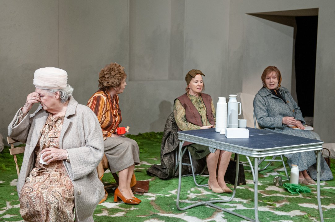 Fenomenálna britská dramatička už desaťročia žiari na popredných rebríčkoch uvádzania aj uznávania jej hier. Tie sú provokatívne, nekonvenčné a angažované, no predovšetkým intelektuálne nápadité a hravé. Aj komornú hru Čaj a apokalypsa uviedlo nezávislé Divadlo letí v Prahe, čím nás úprimne podnietilo predstaviť túto komornú lahôdku z roku 2018 aj nášmu obecenstvu. Najmä tej časti, ktorá s obľubou navštevovala tituly ako StoličkyPopol a vášeň či Ilúzie. Štyri dámy si pri pravidelnej šálke čaju dosýta pokonverzujú o vesmíre, o sebe a o svete, o ničom a o všetkom. Ich rozhovor je autentický vďaka obsahu, kde sa banálne poznámky miešajú s apokalyptickými víziami. Je napínavý, lebo tušíme, že odhaľuje príbeh jednej utajenej vraždy. Je rozumný, lebo je utkaný z fragmentov prežitých príbehov. Je vtipný, lebo je kruto úprimný. Vyvoláva asociácie ako báseň a prizýva na spoluúčasť publikum, ktoré s chuťou lúšti rébusy s podmanivým rytmom zdanlivo absurdných slov. Obsadenie štyroch postáv takými príťažlivými hereckými osobnosťami, ako sú B. Turzonovová, A. Javorková, K. Magálová a E. Vášáryová, je viac než lákavou pozvánkou na udalosť, ktorá bude práve vašou šálkou čaju…