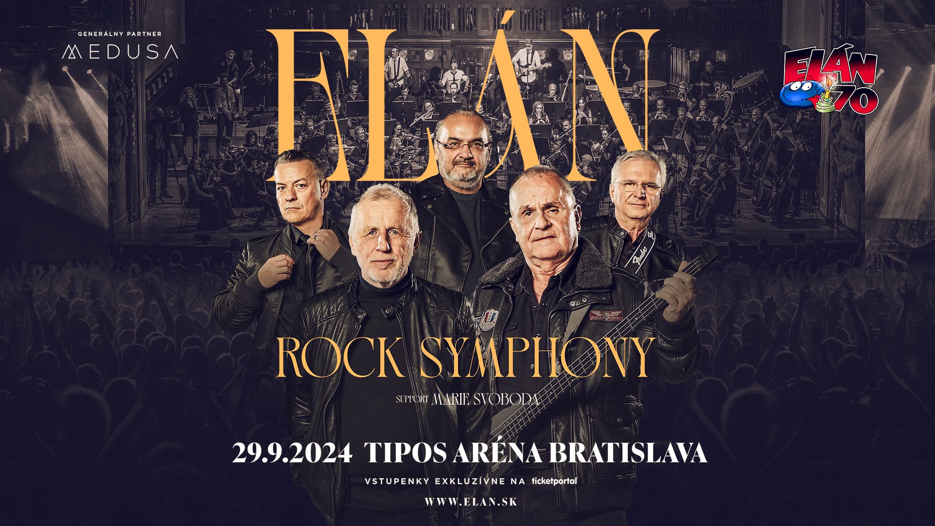 Elán pridáva tretí koncert do najväčšej slovenskej haly a prvýkrát vo svojej kariére vystúpi so symfonickým orchestrom. Koncertným programom nazvaným ELÁN Rock Symphony ukončí 29.9.2024 tri za sebou idúce koncerty v Tipos aréne v Bratislave.