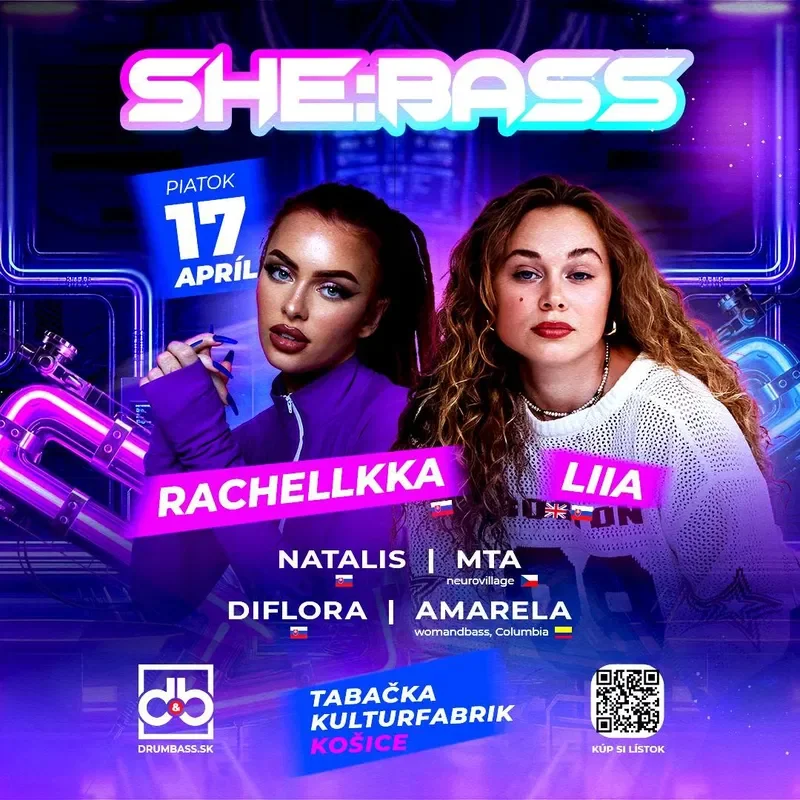 SHE:BASS – purely feminine energy and strong bass performed by an international DRUM & BASS line-up on a 360-degree stage that will make Košice dance for the first time.