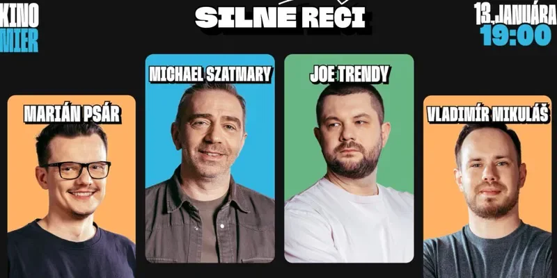 Príďte sa zasmiať do Modry, kde vás už 13. januára o 19.00 bude baviť zostava: Michael Szatmary, Marián Psár, Joe Trendy a Vlado Mikuláš