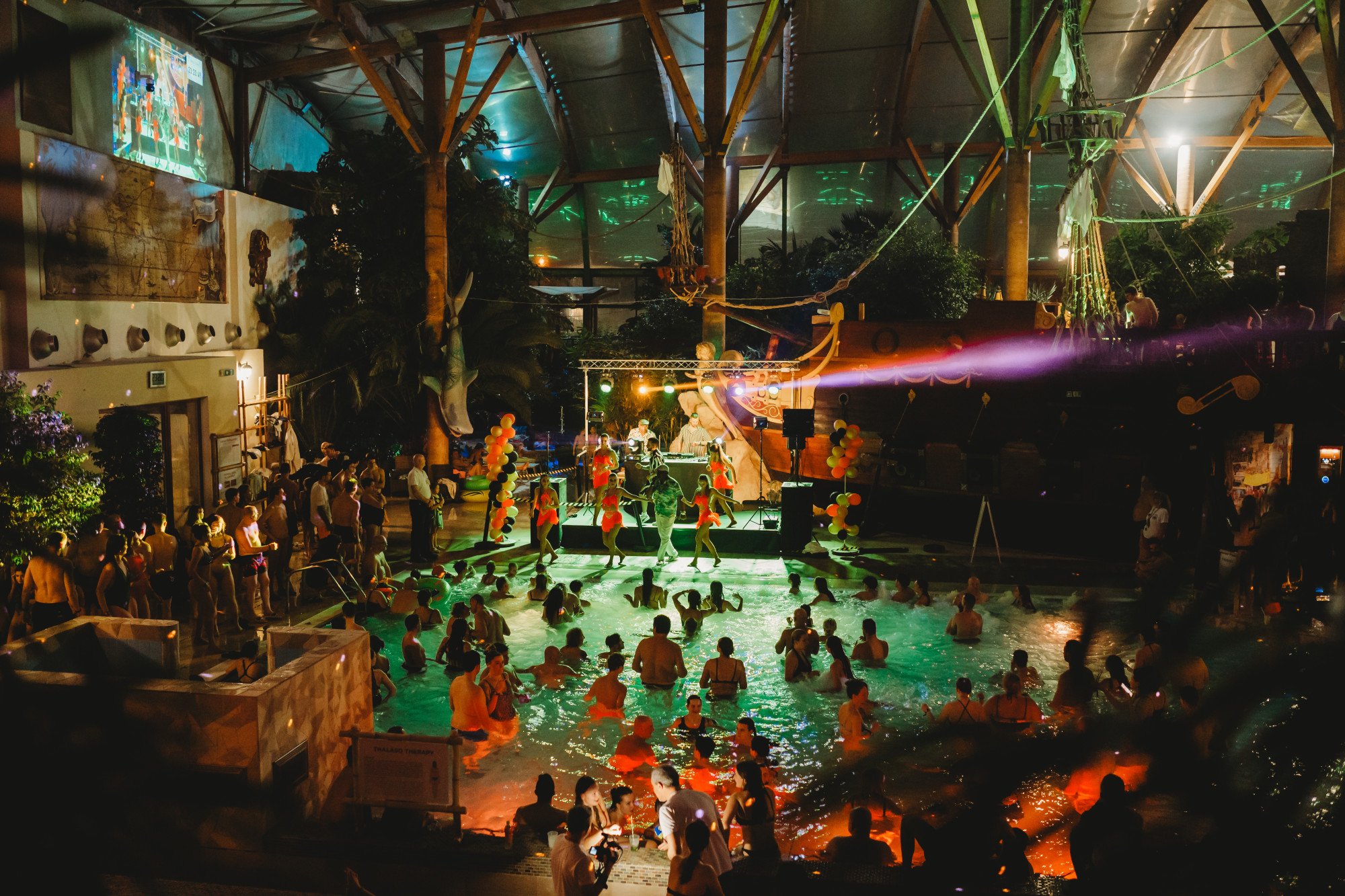 - Vstup zahŕňa Aqua Ticket na večerné kúpanie, welcome drink a špeciálny program od 18:00 do 3:00 ráno. Počas celej noci sme pre vás pripravili bohatý animačný program, hudobné vystúpenia a nebude chýbať ani tombola.