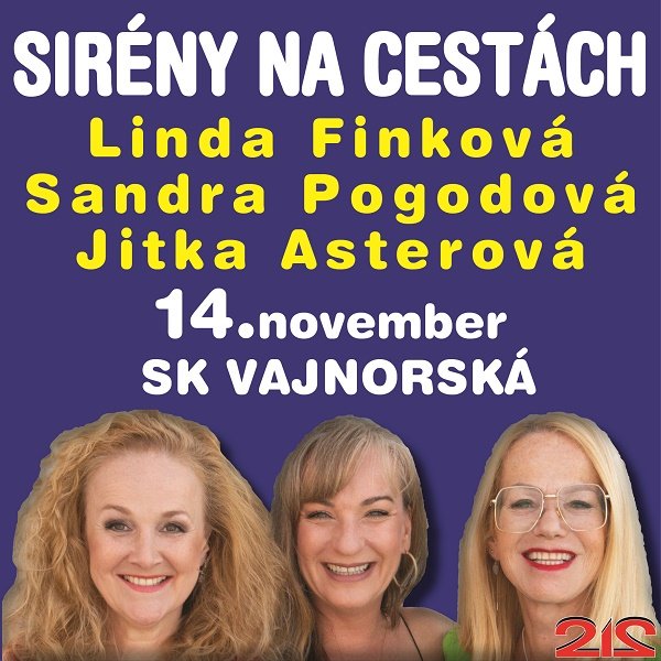 Úplne nová zábavná show ženskej trojice českých herečiek a speváčok Sandry POGODOVEJ, Lindy FINKOVEJ a Jitky ASTEROVEJ – SIRÉNY NA CESTÁCH.